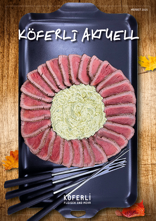Die Informationsbroschüre «Köferli Aktuell» erscheint regelmässig und stellt jeweils regionale Produkte vor, die gerade Saison haben und wahre Gaumenfreuden versprechen.